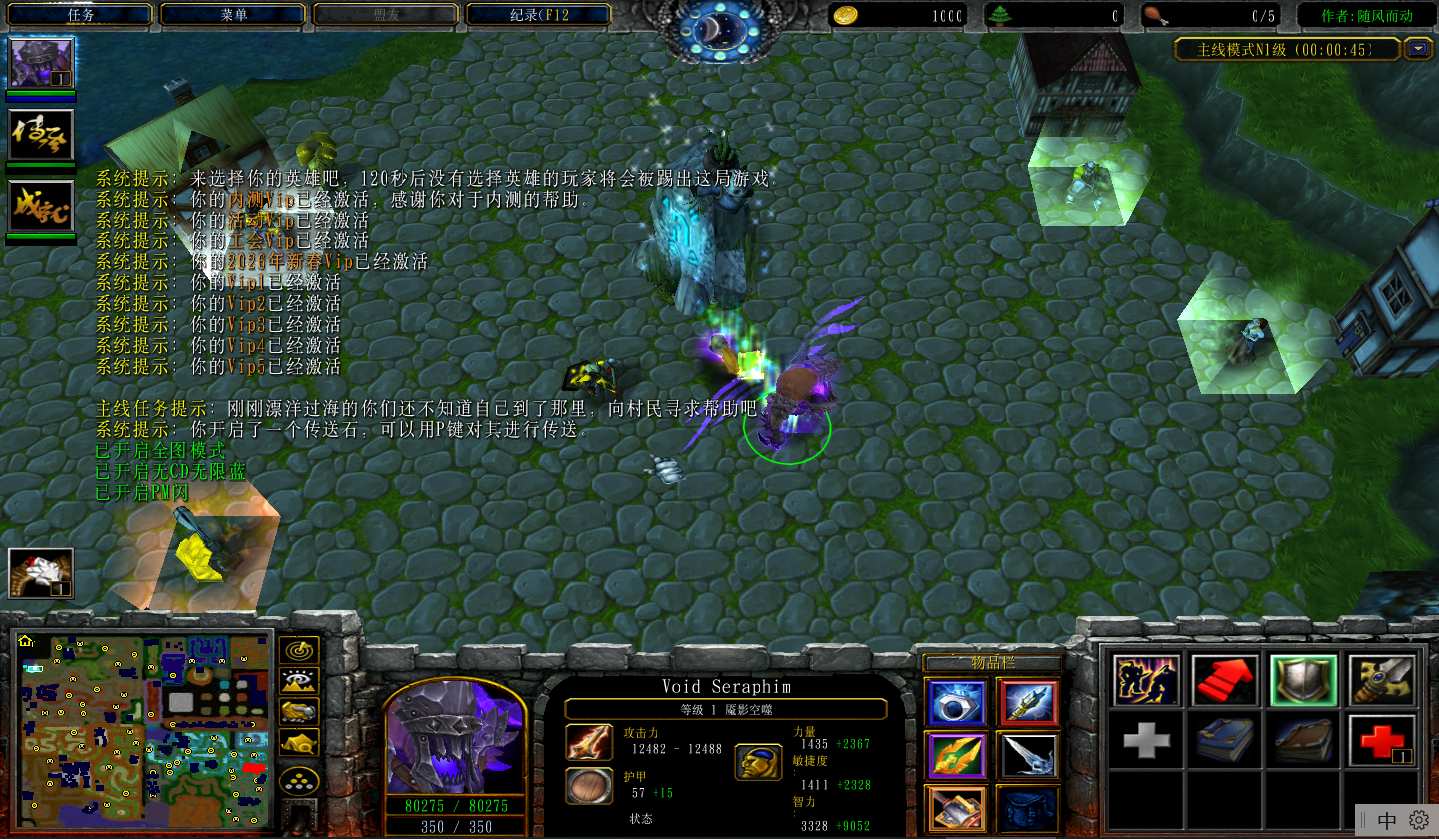 地图名字:征程之路3 1.2.73地图下载+全商城特权+全存档+隐藏英雄+无CD+指令功能