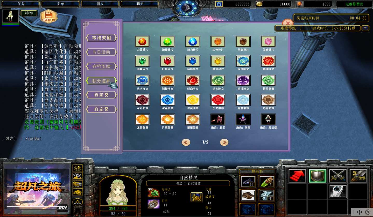 地图名字:超凡之旅2.0.9地图下载+全商城特权+全存档+隐藏英雄+无CD+指令功能