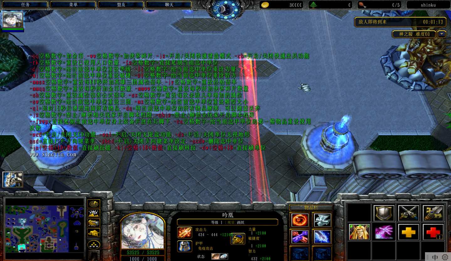 地图名字:神之陵3.0.8地图下载+全商城特权+全存档+隐藏英雄+无CD+指令功能