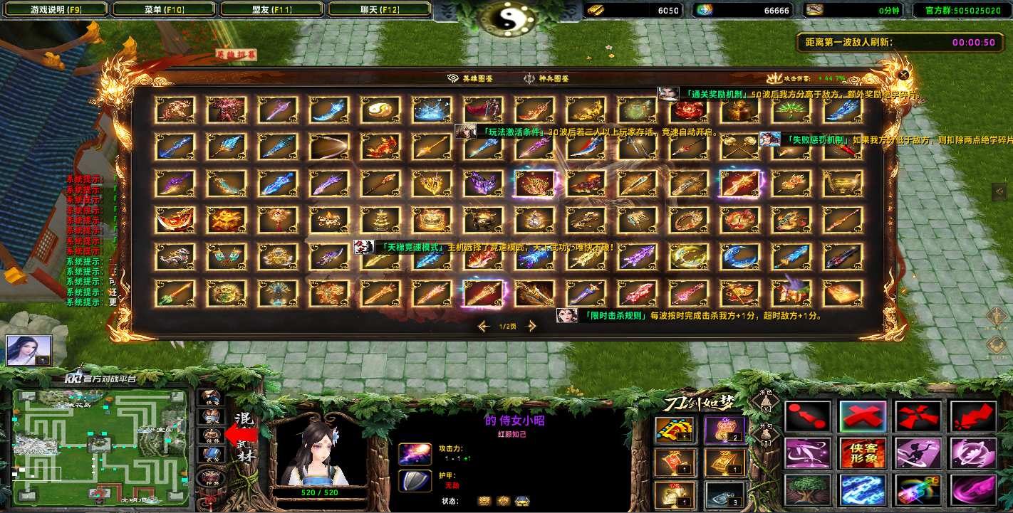 地图名字:混乱武林TD刀剑如梦7.1.31地图下载+全商城特权+全存档+隐藏英雄+无CD+指令功能