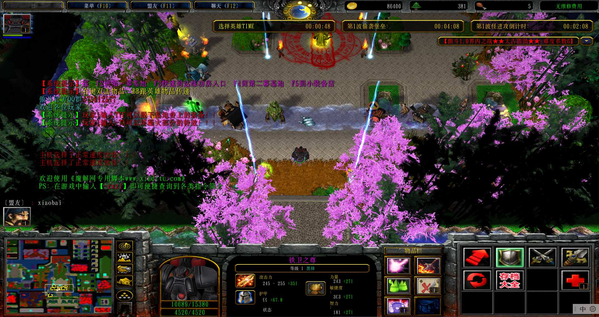 地图名字:傲斗界内之战1.0.45地图下载+无CD无限蓝P闪+商城特权+刷物品+指令功能