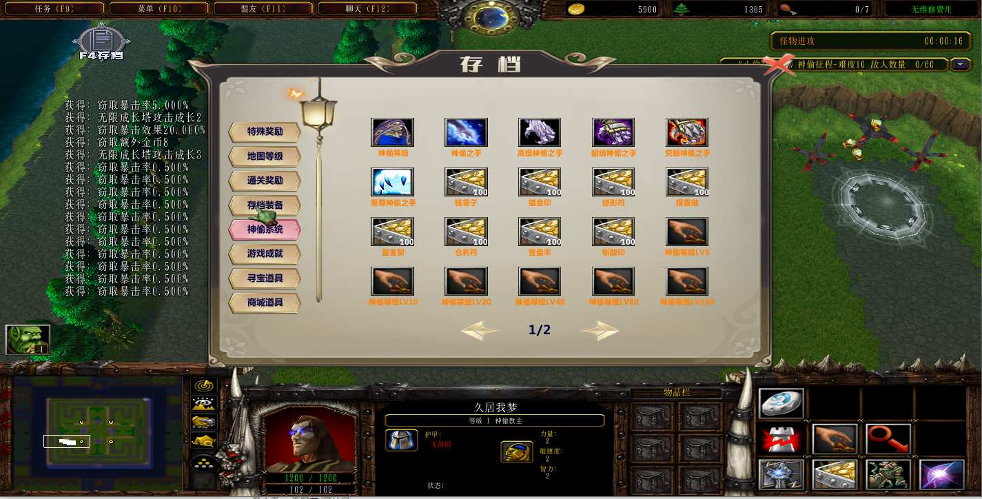 地图名字:小偷TD循环1.1.5地图下载+全商城特权+全存档+无CD+指令功能