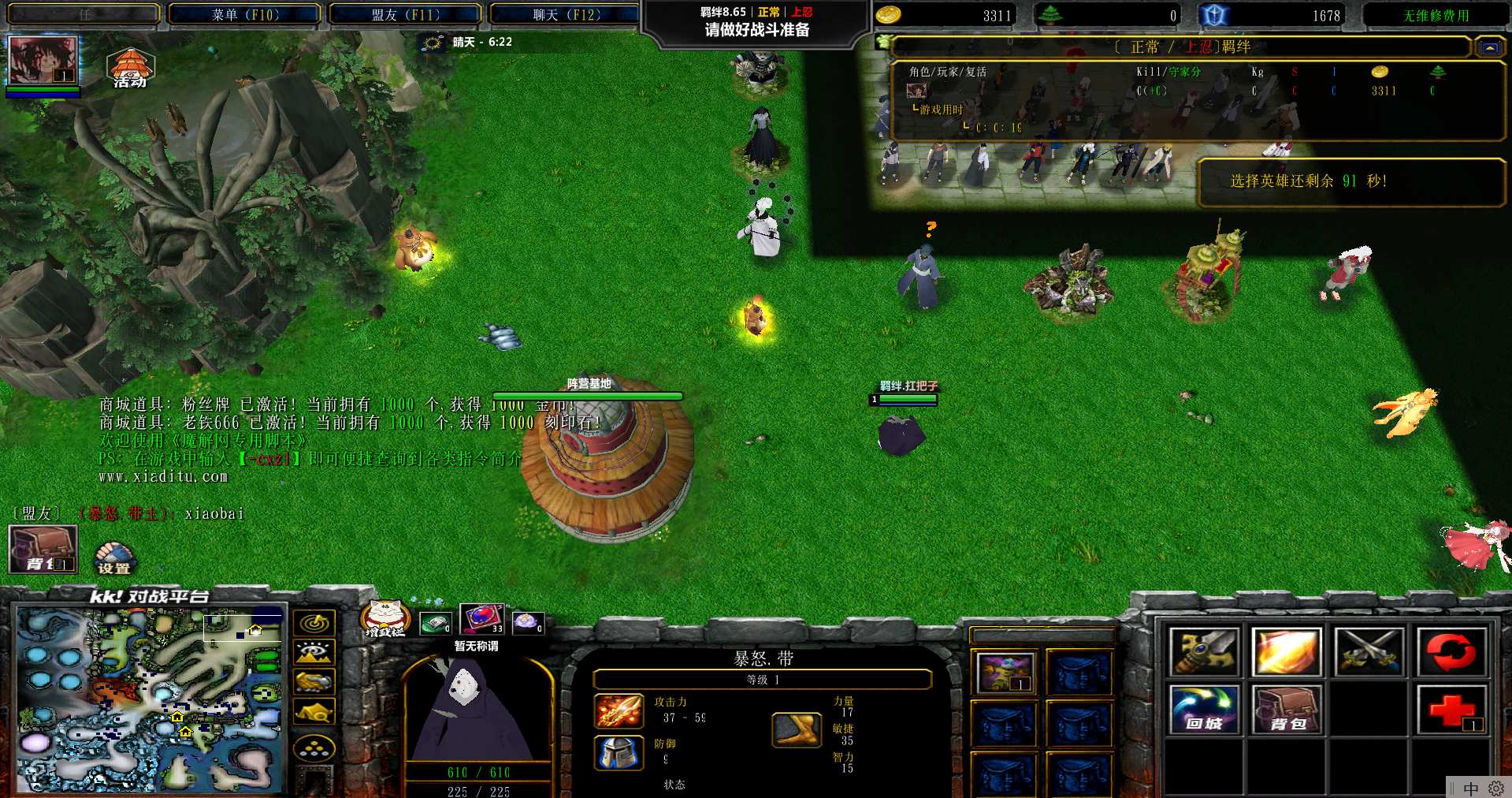 地图名字:火影忍者羁绊I 8.6.5地图下载+全商城特权+全存档+隐藏英雄+无CD+指令功能