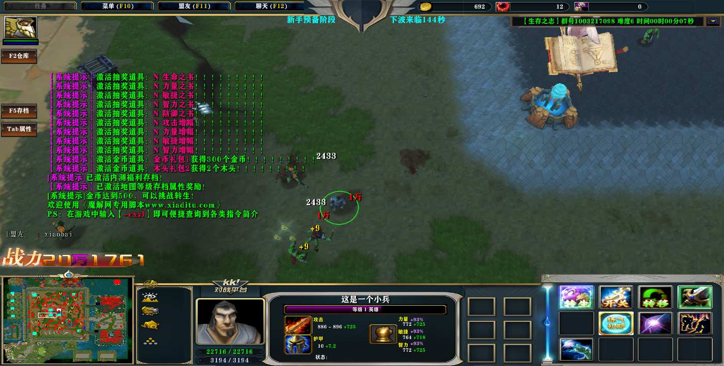 地图名字:生存之志1.0.11地图下载+无CD无限蓝P闪+商城特权+刷物品+指令功能