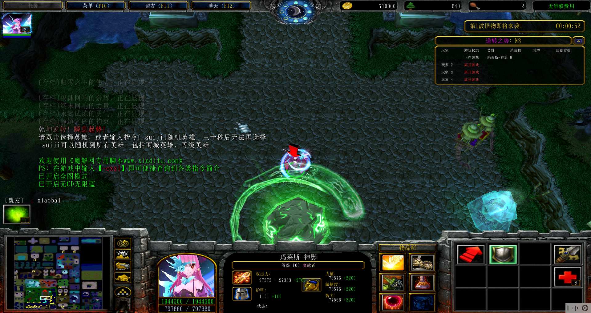 地图名字:天道之境1.0.174地图下载+全商城特权+全存档+隐藏英雄+无CD+指令功能