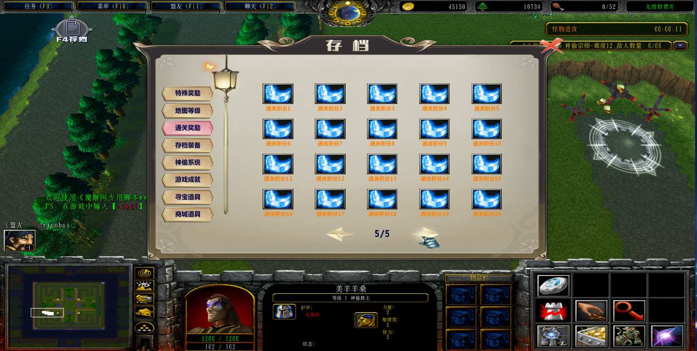 地图名字:小偷TD循环1.2.2地图下载+全商城特权+全存档+无CD+指令功能