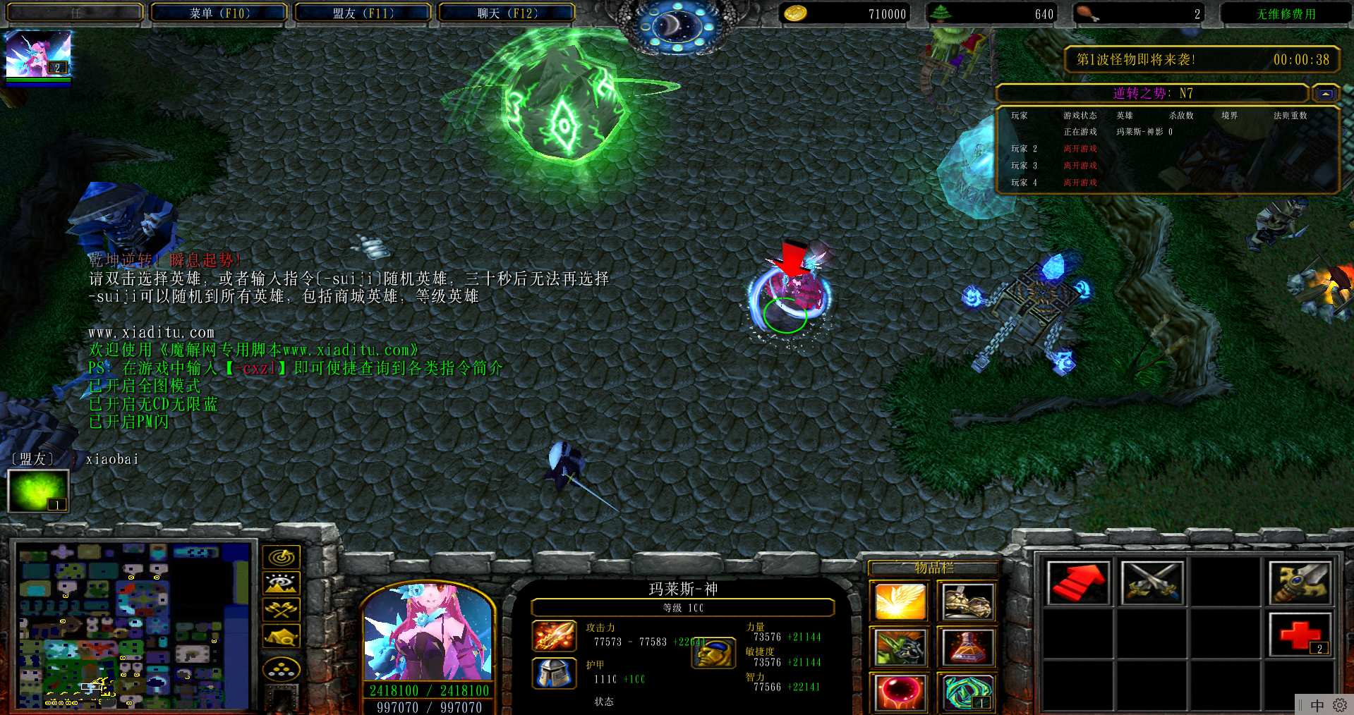 地图名字:天道之境1.0.211地图下载+全商城特权+全存档+隐藏英雄+无CD+指令功能