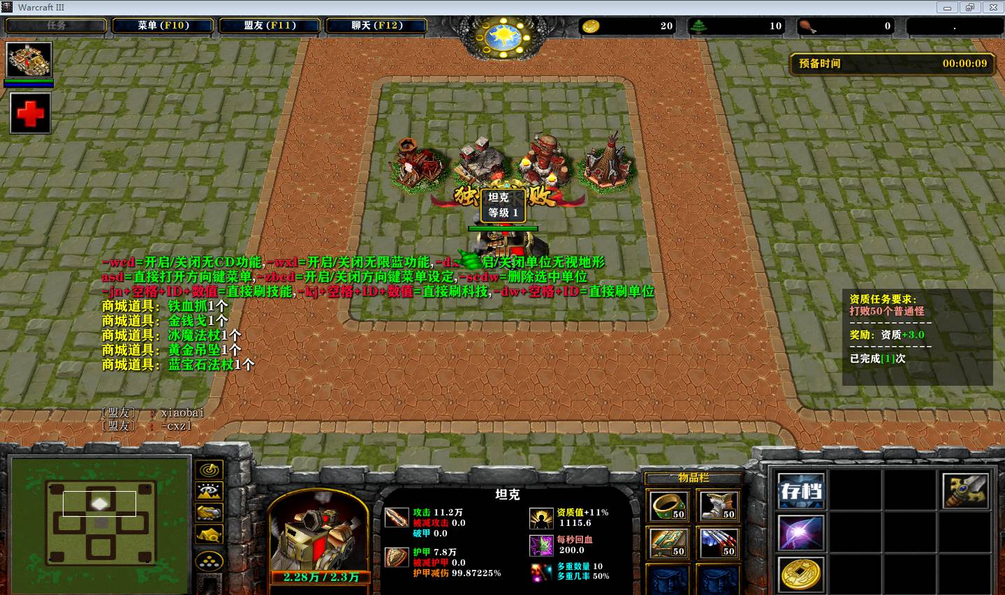 地图名字:钽克大战僵尸1.0.9地图下载+无CD无限蓝P闪+商城特权+地图等级100+刷物品