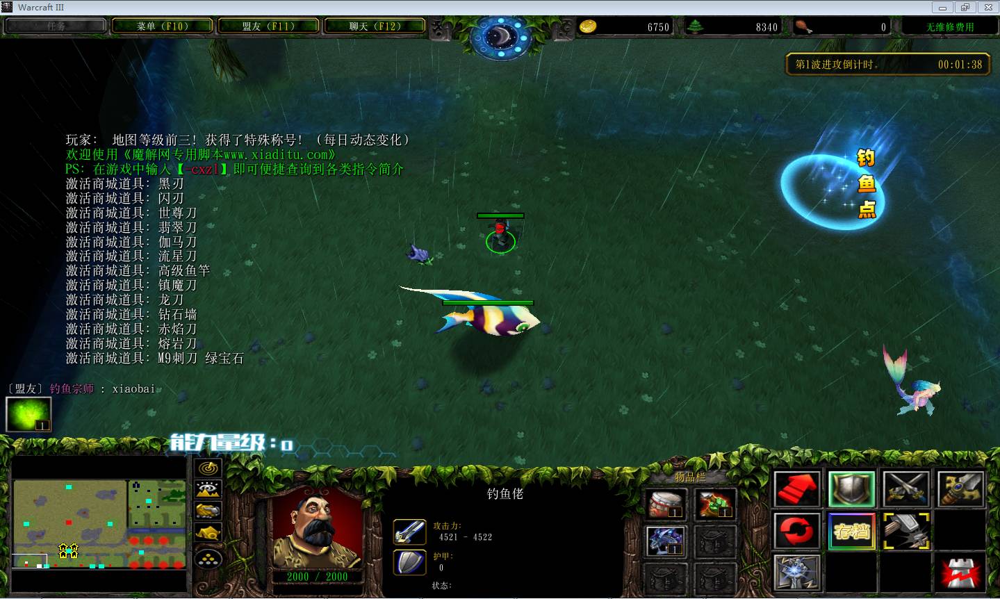 地图名字:钓鱼生存2 1.0.7地图下载+无CD无限蓝P闪+商城特权+地图等级100+刷物品