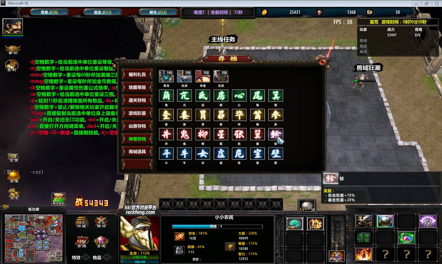 地图名字:蛮荒1.1.13地图下载+全商城特权+全存档解锁+全英雄+刷物品+无CD+爽玩版