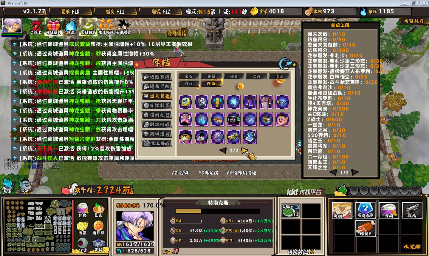 地图名字:神龙激斗2.1.77地图下载+全商城特权+全存档解锁+全英雄