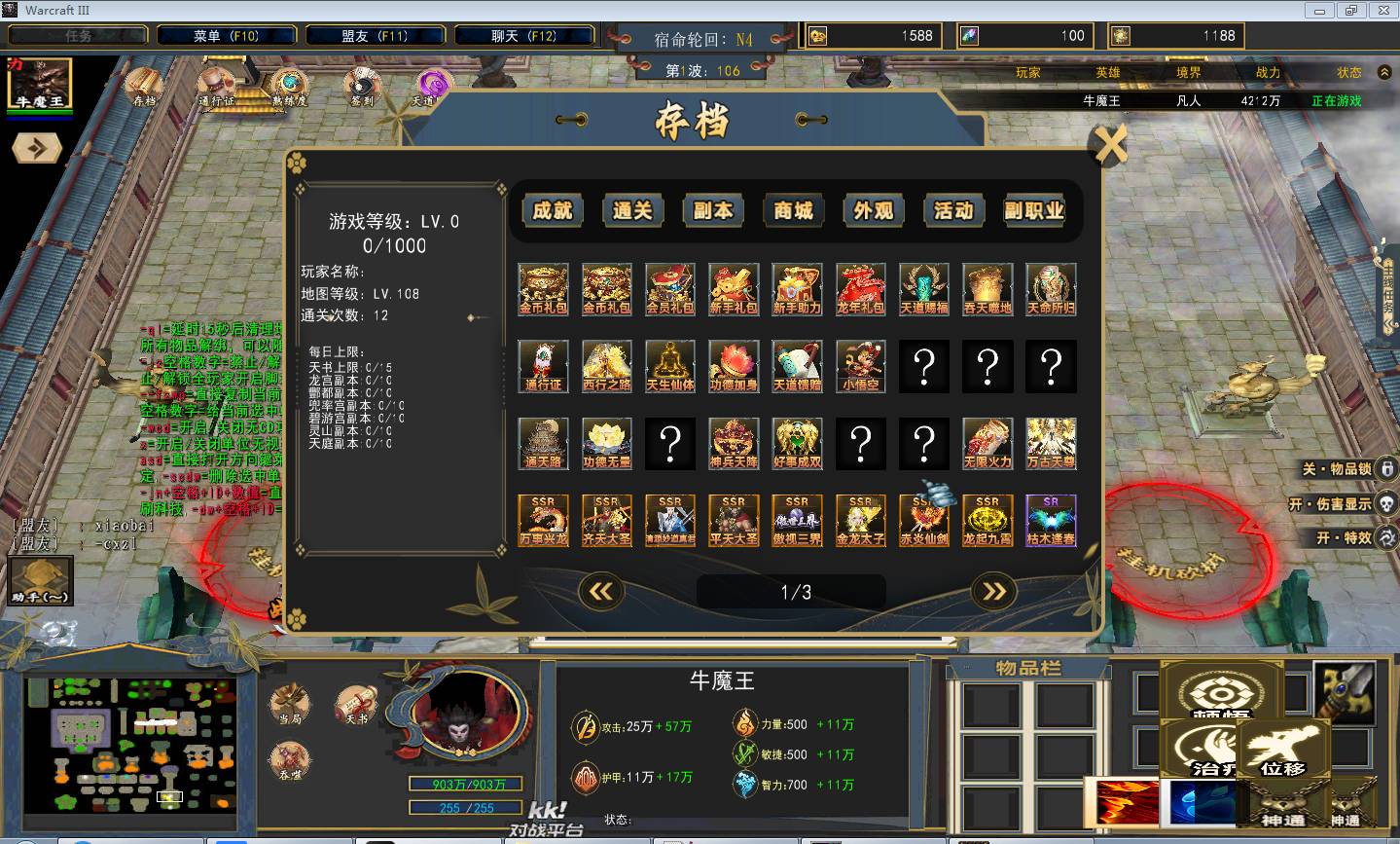 地图名字:黑神话1.1.3地图下载+无CD无限蓝P闪+商城特权+地图等级100+刷物品